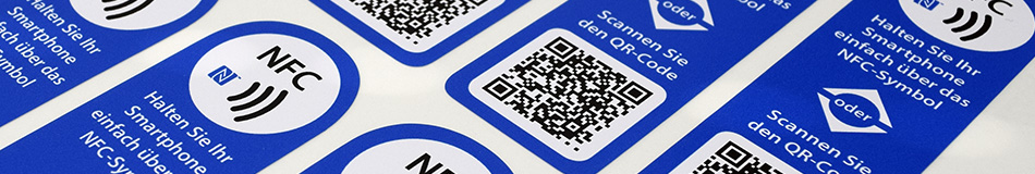 QR-Code-Aufkleber, Barcode-Aufkleber, NFC-Aufkleber und Datamatrix-Aufkleber.